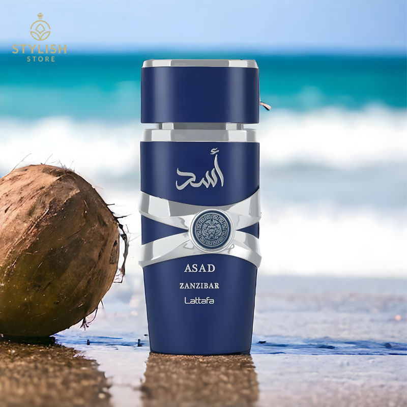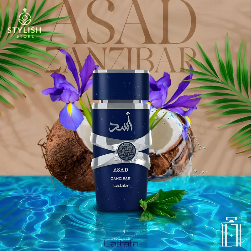 Asad Zanzibar” by Lattafa is an oriental fougère fragrance for men, launched in 2024. It opens with top notes of black pepper and sea lavender; followed by a heart of salty coconut water and iris; settling into a base of vanilla and incense. An ideal fragrance for the modern man seeking distinction and allure